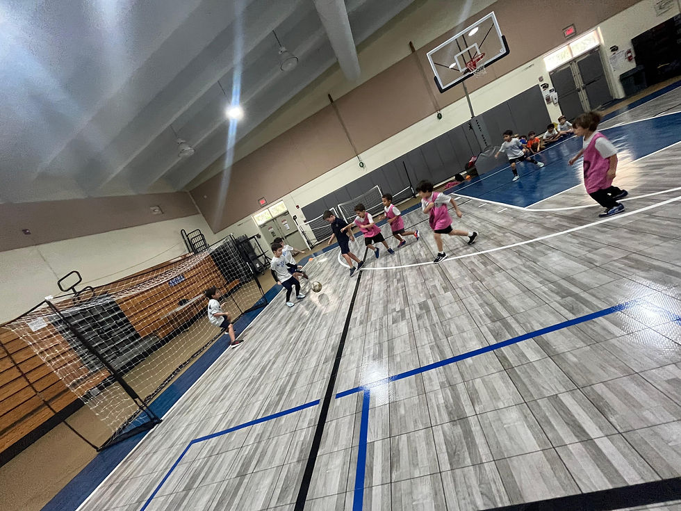 A sport similar to football/soccer, but played on a hard, indoor court with teams of five players (including the goalkeeper). It uses a low-bounce ball. The game is fast-paced, technical, and requires great ball control and constant rotations. Playing time is 2 halves of 20 minutes of effective time (the clock stops at every break).
